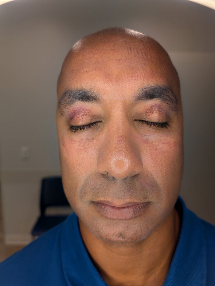Skin redness and mild swelling usually resolve within hours. Some micro-crusting may last 2–3 days. For dry eye treatments, you can resume normal activities immediately.